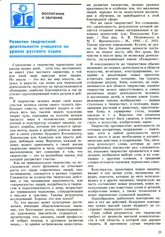 Развитие творческой деятельности учащихся на уроках русского языка