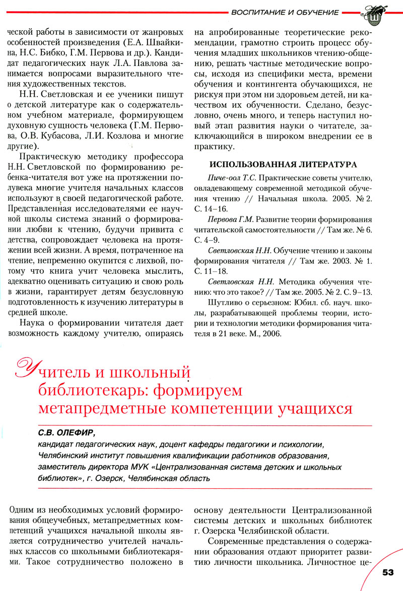 Учитель и школьный библиотекарь: формируем метапредметные компетенции учащихся