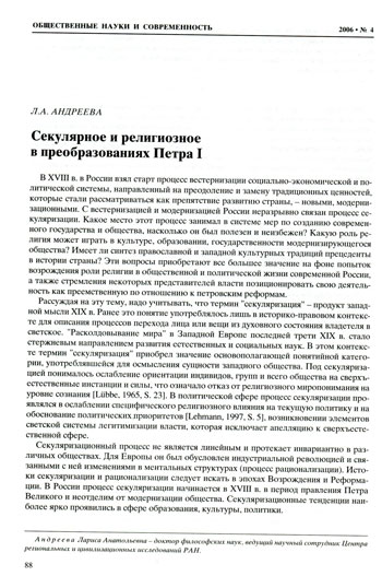 Секулярное и религиозное в преобразованиях Петра I