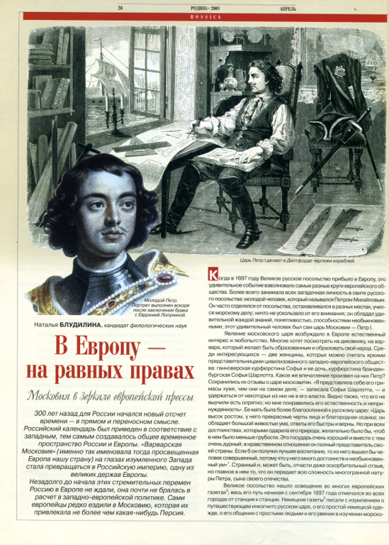 Петр I Алексеевич, прозванный Великим (30 мая 1672 г. – 28 января 1725 г.) – последний царь всея Руси (с 1682 г.) и первый Император Всероссийский (с 1721 г.) Представитель династии Романовых. Был провозглашен царем в 10-летнем возрасте, стал править самостоятельно с 1689 года. С юных лет проявляя интерес к наукам и заграничному образу жизни, Петр первым из русских царей совершил длительное путешествие в страны Западной Европы. По возвращении из него, в 1698 году, Петр развернул масштабные реформы. Продолжая первые попытки и опыты реформ, предпринимавшиеся его предшественниками в ХVII в., Петр и его правительство провели серию реформ, сыгравших большую роль в переустройстве всех сторон жизни государства. Он значительно расширил территорию государства, построил прекрасный город Санкт-Петербург, поднял экономику, основав целую сеть металлургических и стекольных заводов, а также понизил до минимума импорт заграничных товаров. Кроме того, Петр Великий первым из российских правителей стал перенимать у западных стран их лучшие идеи. Блестящие успехи стяжала русская армия и флот – Россия вышла к берегам Балтики, вернула ряд исконных древнерусских земель. Наследие, которое оставил Петр, его сподвижники и, главное, простые труженики, заложили основы успехов России в ее последующем развитии во всех областях. Российский историк Сергей Михайлович Соловьев называл Петра Великого революционером на троне. Личность незаурядного императора во все времена интересовала историков, ученых, литература о великом реформаторе и его времени может составить целую библиотеку. |